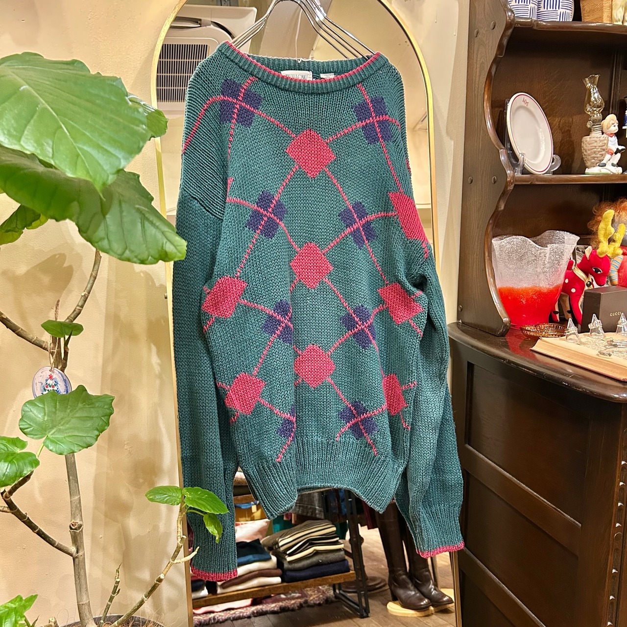 ○ cotton knit argyle sweater